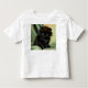 Toddler T-Shirt com um gatinho preto adorável! O gatinho de olhos verdes senta-se num cobertor com uma flor rosa. Um belo presente para amantes de gatos e entusiastas de arte vitorianos!