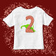 A camiseta infantil "Cute Two Year Old Longneck Green Dinosaur Birthday" foi projetada para fazer as crianças se sentirem especiais no seu grande dia. Com um dinossauro verde simpático e de pescoço longo no centro, esta camisa adiciona um toque adorável a qualquer celebração. O grande número 2 em negrito se destaca, preenchido com bolinhas alegres que adicionam um elemento divertido, tornando-a ideal para meninos ou meninas que estão completando dois anos. Perfeita para crianças pequenas, esta camisa combina alegria de aniversário com vibrações divertidas de dinossauros, criando uma lembrança deste marco precioso.