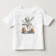 Mamãe se move - Alô de Halloween em Wraps Toddler T-shirt Uma animadora múmia toca uma pose divertida entre duas sorridentes lanternas de jack o', braços levantados e uma perna levantada em movimento de médio. Os olhos largos da personagem e a postura expressiva adicionam energia e charme, enquanto o texto ousado "HELHICE HALLOWEEN", acima e abaixo, ancora a design na celebração festiva. Uma mistura perfeita de beleza assustadora e espírito sazonal.