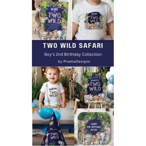Navy Blue Two Wild, Safari Themed 2nd Birthday Criado por Pixelia Designs