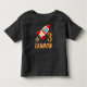 Camiseta de aniversário adorável combina com nossos convites de festa de aniversário com tema de espaço sideral e suprimentos para festas Blast Off. O design apresenta um foguete vermelho e marfim com a idade da sua criança ao lado e o nome abaixo.
