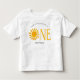Esta camiseta de primeiro aniversário é decorada com um sol amarelo em aquarela e diz "Nosso Pequeno Sol Está Fazendo Um".