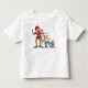 Pinóquio de terno vermelho com seus amigos, dois filhos e uma briga. Esta ilustração peculiar é feita por Ans Collijn © é muito colorida e com muitos detalhes. Uma camiseta de crianças muito fofa!
