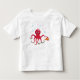 design para crianças, presente para bebês, impressão para bebês, camisetas para bebês, roupa para bebês. A ilustração mostra um polvo e um peixe, o mundo subaquático. Submarino no oceano. Polvo vermelho, tentáculos verdes.