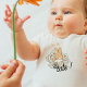 T-shirt pour les touts petits personnalisé, dessin d'un lapin mignon avec des fleurs blanches. T shirt à personnaliser avec le nom que vous souhaitez pour un cadeau unique.