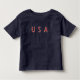EUA com letra vermelha e branca, em uma T-Shirt Marinho.