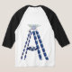 Camiseta Básica, Mangas Raglan 3/4, Branco/Preto, Adulto M