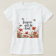 Este delicado design, inspirado na safra, apresenta um campo de flor silvestre com abelhas pairando suavemente sobre papoilas vibrantes. A citação manuscrita "Inspire and Be Kind" é integrada naturalmente nos elementos florais, criando uma peça suave e motivacional perfeita para o veste diário.
