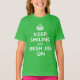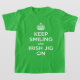 Irish Dancing, Irish Dancer's, Jig On T-shirt. Continue a Jigging com esta fantástica t-shirt de dança irlandesa. Esta camisa irlandesa divertida de dança tem um clássico design Keep Calm com uma coroa que tem shamrocks irlandeses em vez da tradicional cruz e pulgas-de-lis. O slogan diz: MANTENHA O SMILING E O IRISH JIG LIGADO. O tema irlandês prossegue com um olhar legal de "shamrock" na letra O da palavra ON. Este divertido tema irlandês dançante é excelente para qualquer dançarino irlandês jovem ou velho, e faz um fantástico presente de dança irlandesa que qualquer dançarino irlandês ficará encantado em receber. Mais camisetas de dança irlandesas e presentes de dança irlandeses disponíveis em lojas.