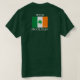 Design de camiseta irlandesa com um mapa da Irlanda na frente. Na parte de trás está a bandeira irlandesa triangular com o impressão de Hooligan irlandês. A frente e o verso da camiseta são personalizáveis.