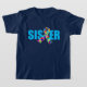 Camiseta Irmã Autismo Frisos de Consciência Azul Fora
