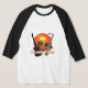 Camiseta Básica, Mangas Raglan 3/4, Branco/Preto, Adulto M