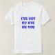 "I'VE GOT MY EYE ON YOU" IN BLUE TEXT LETTERS WITH EYEBALLS