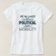 Uma design baseada em texto com a frase "Nós não temos mais diferença em política nós temos diferença em moralidade." O texto é escrito em duas fontes contrastantes. A primeira fonte é uma fonte moderna, em negrito, na cor azul, e a segunda fonte é uma fonte clássica, fina, na cor branca. O texto azul é colocado no lado esquerdo da página, enquanto o texto branco é colocado no lado direito. A página tem uma cor de fundo de bege. Há elementos sutis de linhas e traços entre o texto azul e o branco, simbolizando a eliminação das diferenças políticas. O tom geral da design está elevando, progressista e pensando em frente.