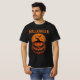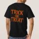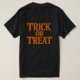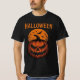 Abrace o clássico horror da temporada com este ousado e impressionante design de Halloween! A arte apresenta uma grande abóbora com um sorriso ameaçador na frente e no centro, com olhos brilhantes e dentes pontiagudos e irregulares. Acima dela, a palavra "HALLOWEEN" é apresentada em uma fonte estilizada e assustadora, tudo isso tendo como pano de fundo uma lua cheia laranja e morcegos em silhueta e árvores nuas e sinistras. "TRICK OR TREAT" (doce ou travessura) em uma fonte grande, ligeiramente assustadora e estilizada também é impresso na parte de trás. Este design de alto contraste é perfeito para quem ama o lado tradicional e assustador do dia 31 de outubro.