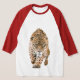 Camiseta Básica, Mangas Raglan 3/4, Branco/Vermelho, Adulto G