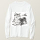水墨画タッチで描かれた、くつろぐ子犬のロングスリーブTシャツ。