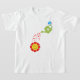 A camisa deste adorável jardineiro apresenta uma cena alegre de uma flor sorridente sendo amavelmente regada com gotículas em forma de coração.