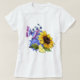 Girassol e Delfinírios com borboletas. Arte de flor de verão.