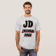O símbolo do dinar jordano (JD) com cor preta e vermelha e com a palavra dinar jordaniano embaixo dela, a moeda da Jordânia. Esta camisa colorida de cinza pode ser personalizada para lhe dar uma aparência única. Você pode personalizar o tipo de fonte, a cor, o tamanho, alterar o texto, remover e adicionar texto, adicionar foto e muito mais.