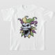 crânio de mau com grin grande de mau. Desenho original de caneta e tinta, com cores Mardi Gras digitais. T-shirts, suores, canecas, artigos de presente.