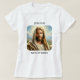 Uma camiseta inspiradora com Jesus sob um céu celestial e a mensagem, "Jesus é o Rei dos Reis."