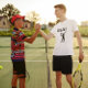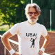 Camiseta Jogador de tênis dos EUA usando ponto como bola