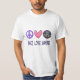 design de jogador legal e único com um símbolo de paz, um coração, um controlador de jogos e a citação "Jogo do Amor pela Paz". Para um jogador de verdade o jogo nunca acaba.