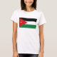 A frente desta t-shirt exibe corajosamente a bandeira jordana com a sua estrela branca distinta em triângulo vermelho próximo a bandas pretas, brancas e verdes. Isso é combinado atrás por um mapa atraente da Jordânia.