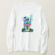 O design de camiseta apresenta uma imagem nostálgica e vibrante: uma jukebox clássica com luzes brilhantes e registros giratórios, acompanhada da legenda "Aumente-a". Essa design evoca a energia e o entusiasmo da era ouro da música, apelando aos amantes da música e aos que apreciam a estética retrorreflectora.
