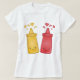 Um design adorável e engraçado que apresenta uma mostarda e uma garrafa de ketchup que estão olhando carinhosamente um para o outro. As camisas de mostarda e ketchup estão a disparar em forma de corações. Muito fofo e divertido para qualquer idade!