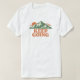 This retro Americana t-shirt channels the quiet optimism of 1970s national park posters. A simplified mountain silhouette anchors the design, paired with bold vintage serif typography reading “KEEP GOING.” Muted forest green and faded burnt orange create a warm, timeworn palette, while subtle distressing and worn edges give the print an authentic, lived-in feel. Flat, screen-print-ready artwork on a clean white background keeps the focus on message and form—calm, resilient, and built to endure.