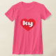 Esta t-shirt apresenta um coração vermelho vibrante contendo as letras maiúsculas, brancas, redondas e cruéis, uma abreviação lúdica para Kentucky, o estado de bluegrass.