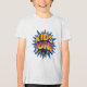 "Bem-vindos à Zona das Crianças! Esta design de camiseta vibrante e divertida apresenta letras em negrito, estilo retrô em amarelo brilhante, laranja e vermelho, esboçadas em azul profundo com um fundo de starburst dinâmico. Os pop design com um olhar inspirado em gibis, fazer perfeito para crianças que amam estilos ousados e energéticos. Seja para brincadeiras, escolas, ou finais de semana, esta divertida lenda gráfica irá adicionar um pedaço de entusiasmo a qualquer guarda-roupa jovem, deixando as crianças saberem que estão na sua própria zona cheia de diversão!"