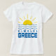 Aproveite o verão com esta camiseta feminina branca de Kimolos, Grécia, sol e ondas do mar. Este design apresenta ondas de sol e água com Kimolos em fonte em estilo grego com uma grande palavra azul Grécia. Use esta camiseta nas suas férias em Kimolos ou dê-a como um presente especial ou lembrança desta bela ilha grega.