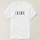 Rei T-Shirt. Camisa clara com a palavra rei em texto escuro cercada por uma caixa preta