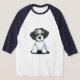 Camiseta Básica, Mangas Raglan 3/4, Branco/Preto, Adulto M