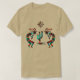 Esta é uma T-Shirt Kokopelli de "Um dos Homens" Única! Ele apresenta uma Silhueta de Elk Touro Negra! Ele apresenta dois Kokopelli sudoeste em Turquoise, laranja e preto tocando flauta e dançando em torno de um cacto debaixo do sol! Design De Arte Original Pelo Artista Kerry Miller.