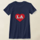 Esta camiseta apresenta um coração vermelho vibrante contendo as letras maiúsculas, brancas e em negrito LA, a abreviação oficial do estado de Louisiana ou da cidade de Los Angeles.