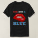 Camiseta Lábios De Diversão Vermelha Azul Mordendo O Beijo