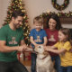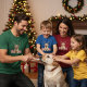 "This beautiful illustration features a detailed portrait of a loving Yellow Labrador Retriever with its characteristic broad head, gentle expression, and smooth golden coat. The dog is given a charming holiday touch with reindeer antlers adorned with small golden and green/blue ornaments. Two beautifully wrapped Christmas presents with red ribbons sit prominently on either side. This high-quality graphic is ideal for personalized holiday gifts for Lab owners, Christmas cards, apparel, ornaments, or any product celebrating this friendly and devoted dog breed."