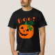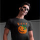 Esta moda, laranja e camiseta preta Jack O Lantern tem um sorriso feliz no seu rosto, e Boo! escrito acima. Você pode alterar o texto na frente e voltar para um nome ou mensagem de sua escolha. A camisa vem em crianças e tamanhos adultos e muitas cores diferentes.