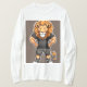 mascote de leão com personagem de desenho animado humano vestindo uma camisa preta e fundo transparente