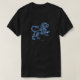 Tee com o símbolo do zodíaco de Leo em azul-prata suave, sobreposto com as estrelas da constelação, contra fundo de céu estrelado