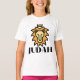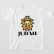 A camiseta desta menina tem um design que mostra a palavra "Judah" em uma impressão única e ousada letra com letras negras mostrando uma imagem de estilo de desenho da cabeça de um leão com a coroa do rei no centro neste tema de citação baseado na fé. Esta camisa apresenta um ajustado relaxado para a forma feminina feita a partir de 100% de algodão esta camisa é durável e macia que faz uma combinação de excelentes.