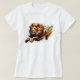 Camiseta Leão Saltador Grande Felino. © Camisetas & Suéteres na Zazzle. Esta camiseta tem um belo e grande Leão, saltando na frente.
