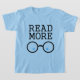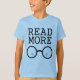 Esta engraçada design de desenho "Leia Mais" com olhos azuis bonitinhos com óculos grandes com quadros grossos é o presente perfeito para o comprar dos leitores, daqueles que se preocupam com a consciência analfabetismo, bibliotecários e qualquer pessoa com paixão pela leitura e senso de humor!