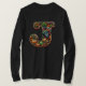 The design is a vibrant and festive representation of Thanksgiving, combining seasonal autumn elements with a playful cartoon turkey. At the heart of the image, the letter "J" stands out, adorned with vibrant leaves, pumpkins, and acorns, evoking a delicate autumnal atmosphere. Beside the letter stands a charming cartoon turkey, adding a touch of fun and personality to the design.