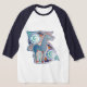 Camiseta Básica, Mangas Raglan 3/4, Branco/Preto, Adulto M