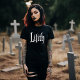 Camiseta Lilith She-Demon. © Dark Heart Desires. Esta camiseta simplesmente tem o nome de um demônio feminino - "Lilith".